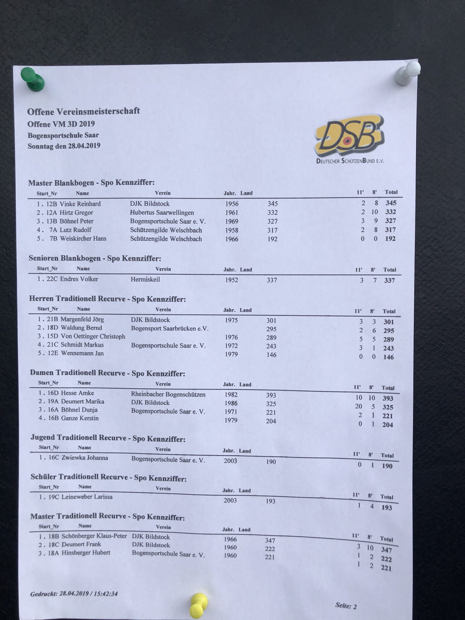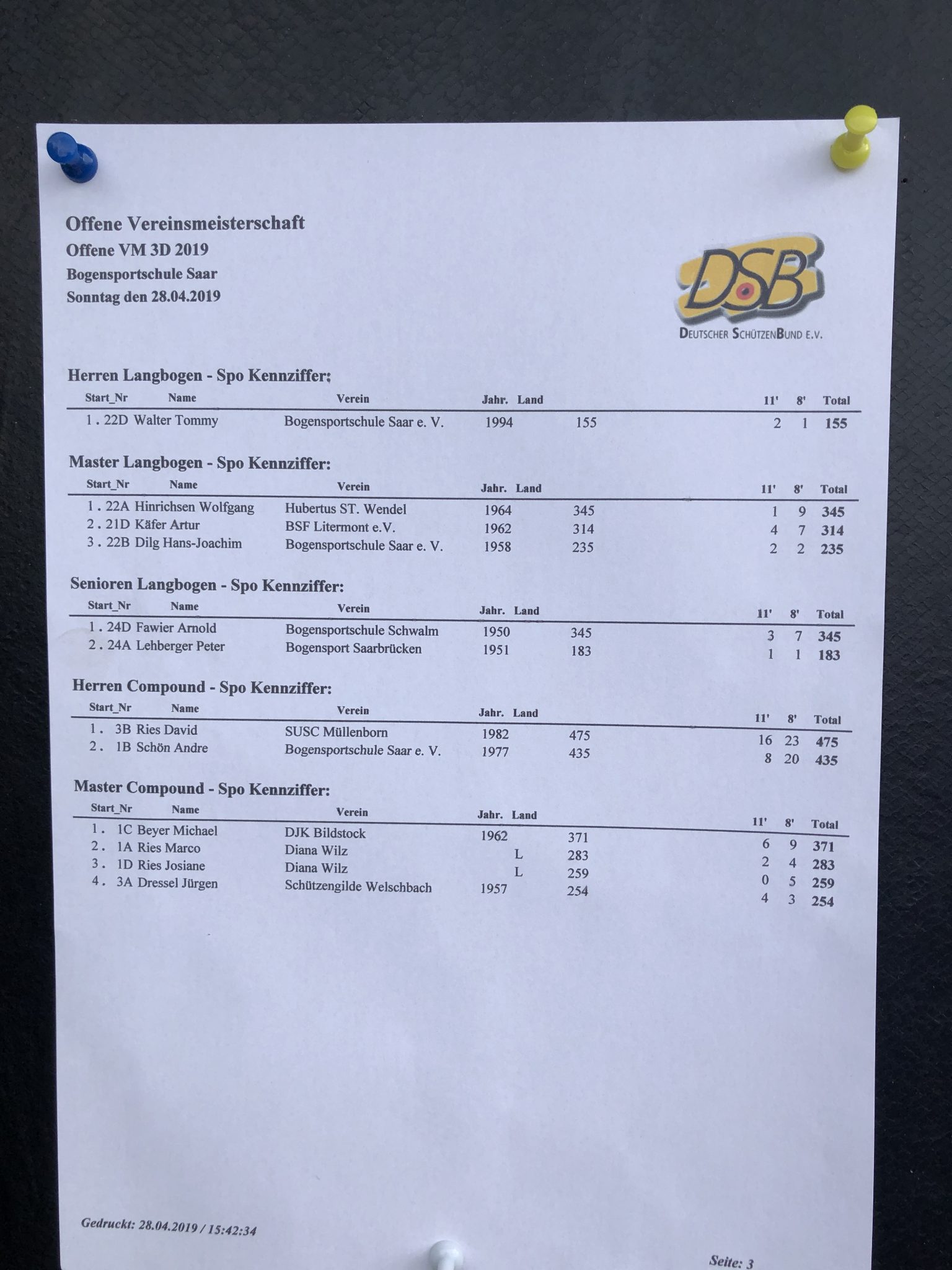 Am 28. April 2019 ist das erste 3D-Arrowhead-Turnier der Bogensportschule Saar e. V. über die Bühne gegangen! Wir haben dem nasskalten Aprilwetter getrotzt und vermutlich mehr Pfeile über den Biberburg-Parcours fliegen lassen als Regentropfen von oben runter kamen. Es gab 24 schön gestellte Schüsse, einen ersten Einblick in den ganz neu gestalteten Biberburg-Parcours, viel Spaß, leckere Verpflegung und natürlich stolze Sieger. Von Langbogen bis Compound war alles dabei. ✌🏼🏹